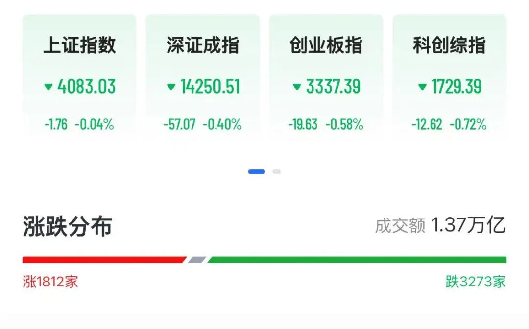 3月17日,A股市場(chǎng)早盤沖高回落,三大指數(shù)均翻綠。截至午盤,滬指跌0.04%,深成指(399001)跌0.4%,創(chuàng)業(yè)板指(399006)跌0.58%,科創(chuàng)綜指(1B0680)跌0.72%。盤面上熱點(diǎn)較為雜亂,全市場(chǎng)超3200只個(gè)股下跌。