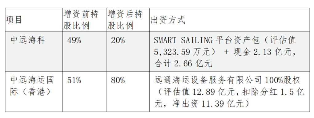 中遠海科(002401)與中遠海運國際(HK0517)香港將以非現(xiàn)金與現(xiàn)金方式共同向中遠海運綠色數(shù)智船舶服務(wù)有限公司注資。增資完成后,船服公司注冊資本由5,000萬元增至5億元。中遠海科(002401)主動放棄部分優(yōu)先認繳權(quán),持股比例由近半數(shù)降至20%,但其仍保留重要股東地位,并通過技術(shù)平臺輸出掌握關(guān)鍵數(shù)字化能力。中遠海運國際(HK0517)香港以持有的遠通海運設(shè)備服務(wù)有限公司100%股權(quán)出資,大幅增強船服公司資產(chǎn)規(guī)模與盈利能力。