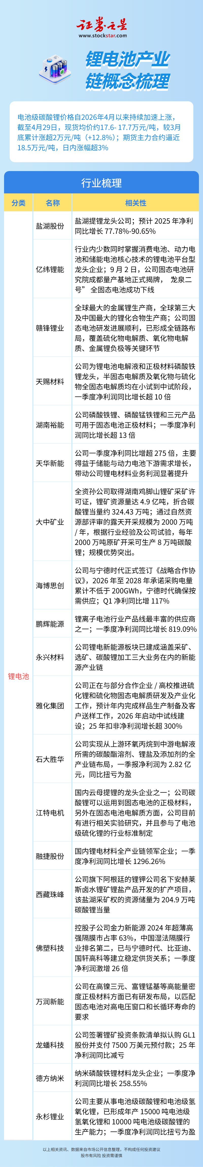 背景:電池級碳酸鋰價(jià)格自2026年4月以來持續(xù)加速上漲,截至4月29日,現(xiàn)貨均價(jià)約17.6-17.7萬元/噸,較3月底累計(jì)漲超2萬元/噸(+12.8%);期貨主力合約逼近18.5萬元/噸,日內(nèi)漲幅超3%。